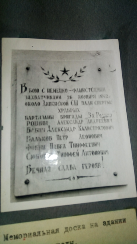 Мемориальная доска, посвященная памяти партизан бригады "За Родину!" на здании ГУО "Липеньский учебно-педагогический комплекс детский сад - средняя школа" была заменена в 2005 году.
