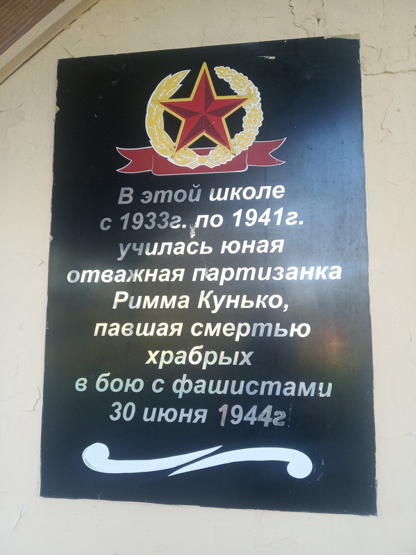 Мемориальная доска в память об юной партизанке Римме Кунько была установлена на здании Липеньской средней школы в 1979 году. Замена памятной доски была проведена в 2005 году.